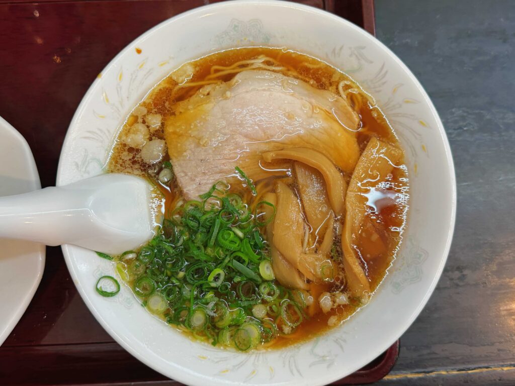 まずは主役のラーメンから。透き通るような醤油味のスープは、一口含むとじんわりと身体に染みわたるような優しい味わいです。